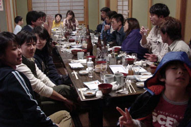 パーティには海で見かける仲間がズラリ。大好きなお寿司もズラリ。空いた酒瓶もズラリ